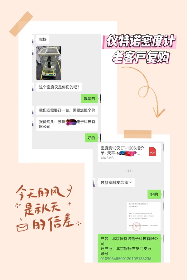 16年來,儀特諾密度計憑借卓越的品質和貼心的服務,贏得了眾多客戶的信賴。許多老客戶在開新廠或擴大生產時,依然選擇復購我們的產品;更有客戶主動向朋友推薦,成為儀特諾的“代言人”。這些信任與支持,是我們不斷前行的動力。