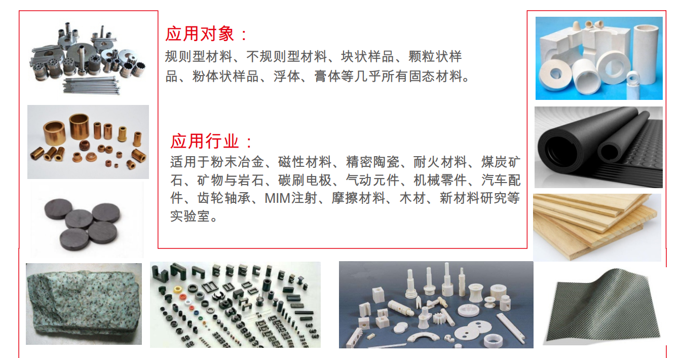 無論您是來自粉末冶金、陶瓷、建材還是科研院所,只要您的產品和多孔、吸水有關,需要測量密度、孔隙率、含油率等一系列參數,都可以使用儀特諾ET-320M、ET-120HM、ET-120S系列多功能密度儀,它讓復雜的檢測變得像“稱重”一樣簡單,幫您把寶貴的時間和精力,投入到更重要的研發和生產中去。